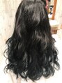 毛先のみブリーチして、光の加減で毛先はネイビー。ブリーチしてない部分は光の加減で黒、暗めのグレーになるように。