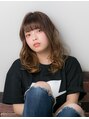 ラフでカジュアルなゆるふわセミロングスタイルは大きめのコテでウェーブ巻きしています♪バームをで立体感を出してスタイリングが◎