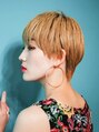 夏におすすめなハイトーンベリーショートです。ショートボブベースに浅めのレイヤーが入っています。レイヤーにより軽さと動きがでます。カラーはツヤがあるオレンジ系で個性的な大人感を演出します。