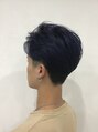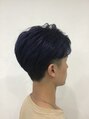 サイドは3ミリのツーブロック、バックは5ミリからのグラデーションツーブロックでマッシュ系ボブスタイル。ブリーチ後にダークブルーをオン。ブルーブラックとは違う暗めのブルー。