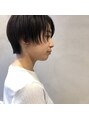 ナチュラルショートスタイル。ボーイッシュにならないように女性らしさを意識したシルエットに。透け感のある束感が大人かわいくて◎