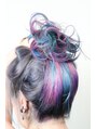 シルバーをベースにして、インナーでピンク、水色、薄紫のパステルメッシュに♪軽く巻いてポニーテールで結ぶとかなり可愛いスタイルになります!!