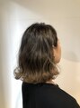肩レングスの外ハネ無造作結べるボブ×アッシュカラー