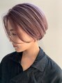 ダブルカラーで施術した透明感あるパープルアッシュのショートボブです。柔らかいカラーと一回のブリーチで透明感を出すパープル系のカラーがオススメです。
