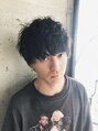 メンズのナチュラルパーマスタイル。マッシュベースで寝癖っぽいラフなイメージ