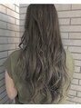 エヌドット、ポリッシュオイルを使ってセミウェットな感じに。カラーはブリーチのハイライトをいれてグレー系の色味に。