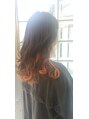 インナーカラー部分をブリーチしてカラートリートメントをON!オレンジカラーで夏らしく。表面はナチュラルなブラウンに。
