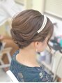 髪の短い方のアップスタイルです(*^^*)パールのカチューシャを引き立たせるためにシンプルなふわっとしたアップにしております☆