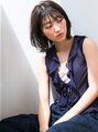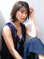 前下がりボブをベースに、表面にレイヤーを入れてくびれをつくります。前髪も束感をプラスして抜け感を出すのがポイント。外ハネに巻き、ポリッシュオイルとヘアバームで艶やかに仕上げます