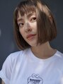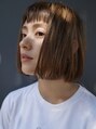 顎ラインジャストのボブ。ハイトーンのベージュカラーで重めなボブも軽い印象に。中間から束で軽さをつけて耳掛けアレンジがしやすいように◎