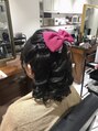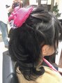 編み込みとねじり編みを合わせ、ご持参頂いた髪飾りは高めに付けて可愛らしくセットしました。