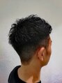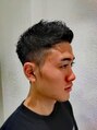 高めののウエイト(全体の重心)のツーブロック刈り上げスタイルです。サイドは3ミリでバリカンで刈り上げバックは6ミリでバリカンで刈り上げその間を4.5ミリで刈り上げることで横と後ろを馴染ませています。男らしいスタイルでかっこいいですね!