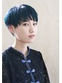 ケアブリーチで黄色みを取り除きカラートリートメント(ブルー)でダメージを抑えた鮮やかでツヤのあるカラーリング。ベリーショートでスタイリングも楽にヘアスタイルを楽しめます。