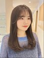 重めのロングスタイルに表面だけレイヤーを入れたウェーブのスタイル。ベージュ系の柔らかみとツヤのあるカラーにしました。