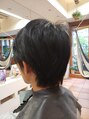 ツーブロックに見えないようなソフトツーブロック。後ろはすっきり刈り上げ、ネープレス、ビジネスでもいけるビジカジに仕上げました!パーマをあてて、無造作ショートに♪