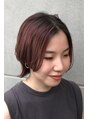 前下がりボブウルフサイドは前下がりラインでパツンとカットバックは襟足に重さを残しつつ丸みのあるシルエットにカラーはピンクグラデーションカラー