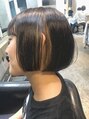 アゴライン上でブツっとラインをのこしたシンプルなミニボブ。さりげなくポンイトインナーブリーチでクリアベージュを入れました。
