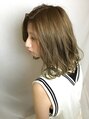 ボリュームのある外国人風Aラインボブ。アウトラインに重さを残しつつ、しっかり質感調整をすることで動きのあるスタイルに。カラーは全体にハイライトを入れてから柔らかいマットベージュをのせることで赤味が解消でき、抜け感と透明感がでます。