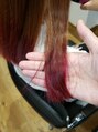 ベースはピンク系のブラウンにすそにレッド系の色をオン!ワンランク上のおしゃれカラー 巻いたりして動きを出しても可愛いです☆