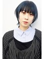 マッシュウルフのエッジショート。シックブルーカラーで個性的なモードテイスト。イルミナカラーが気になる方、センシュアルショートにしたい方にも良いです。厚めバングと似合わせカットで小顔に見せれます。黒髪の方、伸ばしかけの方もご相談してください。