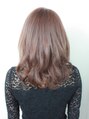 アッシュ系のカラーで透明感をだし、アウトラインが重めで、ひし形になるようにセイムレイヤーにカット、中間層に動きを出したら、毛先に揺れ動くようなゆるふわパーマをかければ小顔感アップ!【中山】