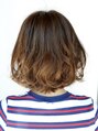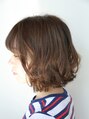 コールドパーマで柔らかさを出した強すぎないカールスタイル。朝の忙しい時間帯にラフにスタイリングできるのが便利。前髪にも丸くなるようにパーマがかかっていますので優しさも演出。ボブですがセニングで全体の毛量を少なくしているため動きもつきやすい。