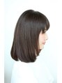 髪を暗めにしてツヤ感を強調したミディアムのストレートスタイルです。顔周りはレイヤーを入れて顔を包みこむように切っていますので小顔効果も期待できます。毛先を少し重めにしていますので、乾かすだけで簡単にまとまるヘアスタイルです。【中山】