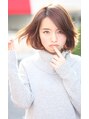 空気感のあるベーシックなボブ☆伸ばしかけの斜め前髪も決まります♪メルティーカラーで透明感と、毛先の1カールで柔らかい動きを出します☆耳かけしても可愛く、色の明度を暗くしても可愛いのでオフィスでも◎【Arlel 池袋】