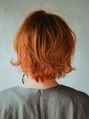 肩につかないショートボブスタイル★大きく巻いた前髪がキュートに!!襟足の外ハネで遊び心のある可愛いスタイルに仕上がります!カラーは暗くなりすぎない明るめオレンジ系で、耳かけスッキリみせるのもポイントです!