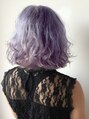 Wカラースタイルです!!ライトなブロンドまで明るくすれば、そこにラベンダーのカラートリートメントをイン!!最後ランダムに巻けば光によって明るさ、色味が変わって見えますよ!!