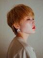 ハイトーンのショートスタイル!!カットはマッシュベースに、フロントは目上ギリギリの長さでえりあしはスッキリと。カラーは、ブリーチをして色をのせます。マッシュで、ハイトーンのカラーリングがガーリーな印象に!