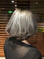 シルバーグレーカラーです。重めのボブに、ハイライトで透明感、動きを、淡い無彩色カラーでニュアンスをプラスしました。