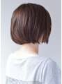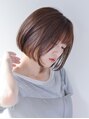 あごラインにレングスを設定したワンレンボブスタイルです。重軽に量感調整しました。前髪は、透け感がでるように薄めにカットしています。カラーは、ベージュブラウンに!
