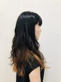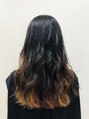 2色のインナーカラーをいれたロングのスタイルです。カットはあまりレイヤーを入れず、Aラインの重めのスタイルにしました。顔まわりにうしろ髪を持ってきたときに、毛束のぱつっと感を出したいのでうしろはまっすぐラインで切りそろえました。