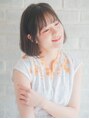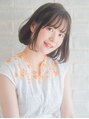 明るすぎないベージュ系カラーで透け感のあるカラーに。と丸みのある顎下ラインのボブスタイルはキレイな丸みがでて女性らしさを引き立出せてくれること間違いなしです。スタイリングも楽々でヘアクリームをなじませると程よいツヤ感がでます。