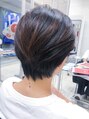 サイドと襟足を切り込み、トップは長めに残して流れを付けたセンシュアルなショートスタイルです。ボーイッシュにし過ぎないのがポイントです。