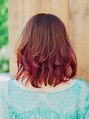 茶色から赤のグラデーションカラーです!!!こちらの赤みの発色は、ブリーチ必須のカラーになります。全頭赤だと少し派手な印象になりますが、グラデーションなので派手になりすぎません!仕上げに巻いてあげると赤みがより可愛く引き立ちます!