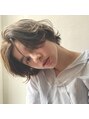 ゆるい動きを活かしたショートボブです。センターパートで少しかき上げるようにするとシャレた雰囲気になりやすいです。カラーもアッシュベージュで柔らかい質感に。