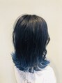 周りとの違いを見せたい方にオススメ。ネイビー×ブルーのグラデーションで派手だけど大人っぽい印象に。切りっぱなしワンレングスで、外ハネ、内巻きどちらでも対応可能です☆