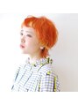 ブリーチ後にカラートリートメントのオレンジをたっぷり入れて、前髪とサイドの耳周りに少しだけアクセントカラーでイエローを入れています。耳より前はマッシュベース、耳より後ろをウルフベースにカット。遊び心のあるヘアプロデュースもぜひお任せ下さい!