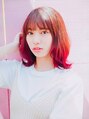 毛先にかけてピンクの発色が強くなるようにカラーリングしています。カットは顔まわりを中心に段をいれて軽さと立体感を出しています。パッツンバングにすることでガーリーな雰囲気にもなるので伸ばしかけの方にもおすすめできるスタイルです。