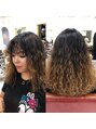 ツイストスパイラルパーマ。中間から馴染むように、でもしっかりとかけています!おろしても、結んだアレンジスタイルでもクールに決まるスタイルになっています。