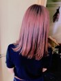 ブリーチを二回して、かなりハイトーンにした後トーニングする秋から冬への赤紫系のカラー。艶深コラーゲントリートメントを施すことで深みと浅さのコンビネーションがよりキレイに出ますよ!