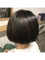 ブリーチを使わずファッションカラーでのウィービング!派手になり過ぎず退色の心配もブリーチ程いらないので、お仕事されている方でも挑戦し易いです。スタイルはアゴラインのフラットなワンレンボブ!