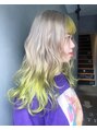 ブリーチ履歴複数回あり◎ホワイトブロンドのベースをつくってから、マニキュアで前髪インナーと毛先グラデーションのデザインカラーに!