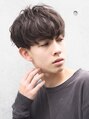 ソフトツーブロックでサイドの内側を襟足を短くし、前髪に長さと重さを残したショートマッシュがべース★くせ毛風パーマで柔らかなニュアンスをプラス。ワックスやハードバームを馴染ませ毛先を少し散らすようにスタイリングしたら完成です◎