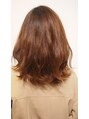 人気のミディアムレングスです☆鎖骨下くらいの長さにカットして、ラフに動きが出るように26mmのコテを使って波ウェーブに仕上げました。