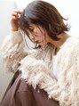 レイヤーボブにオン眉が大人可愛いスタイル。ランダムに巻いたパーマを根元から散らして乾かし、ヘアバームでツヤ感を出して仕上げます。