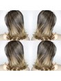 ハイライトグラデーションのベースを作り、根元ダークグレー、毛先をブロンドベージュで染めてます。立体感のあるオンブレカラーです。