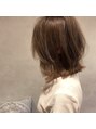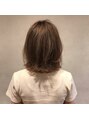 肩上ギリギリの外ハネボブです。全体ブリーチをしてから少しくすみ感のあるベージュを重ねた透明感のあるやわらかいタッチのカラーです。